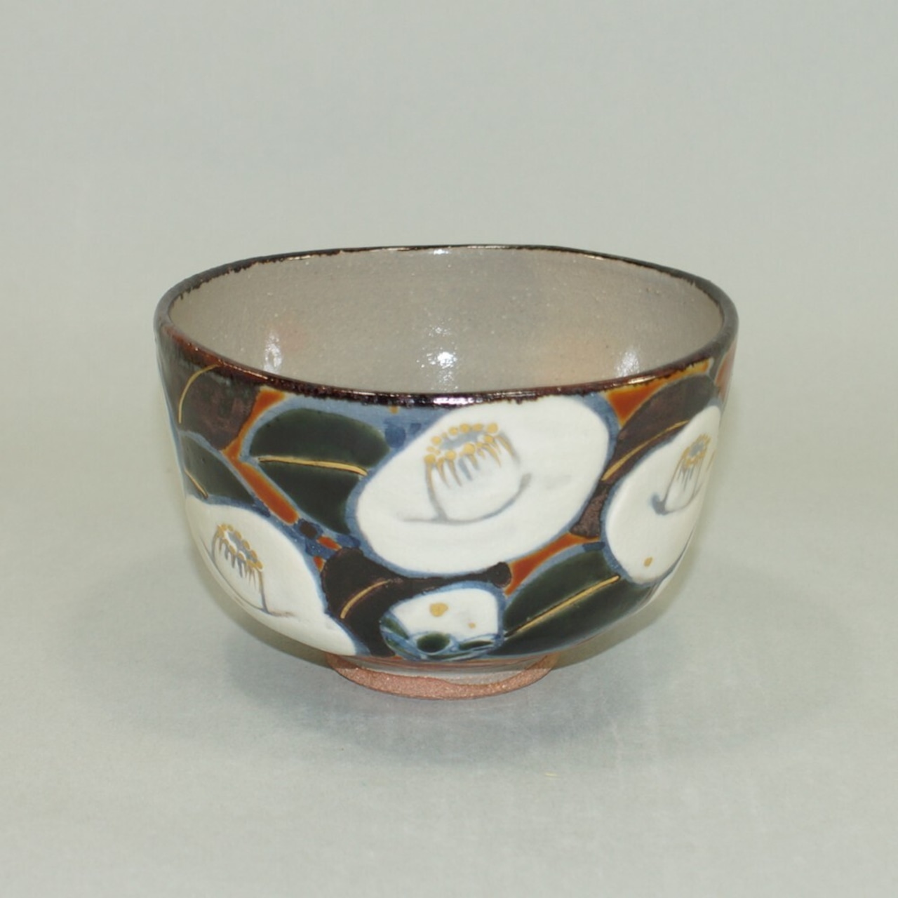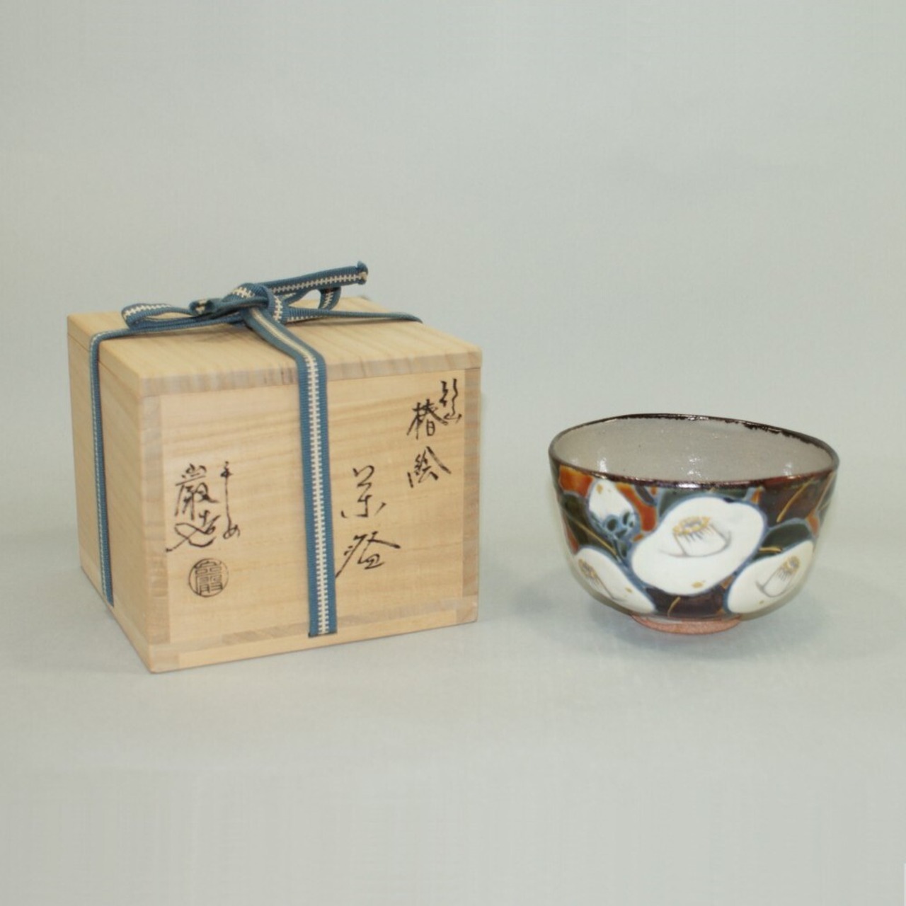 乾山写椿絵茶碗 平安 山川巌造14eabz